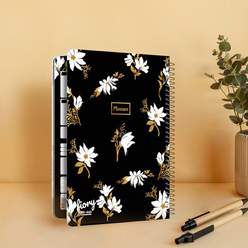دفتر برنامه ریزی مستر راد طرح گل ساکورا مدل Flower مشکی