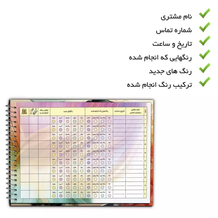 دفتر نوبت دهی رنگ مو طرح طیف رنگی