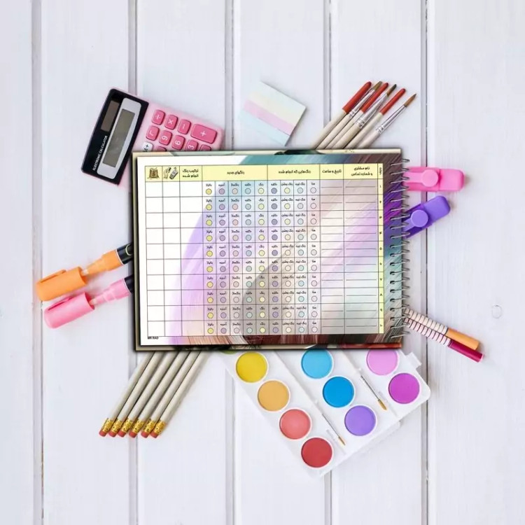 دفتر نوبت دهی رنگ مو مستر راد طرح طیف رنگی جلد سخت ✅️توضیحات : 🌸جلد سخت 🌸75 برگ 🌸سایز :20*15 سانتی متر