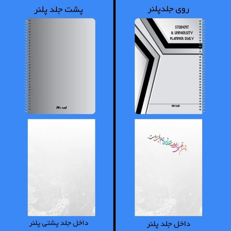 دفتر برنامه ریزی مستر راد طرح فضایی مدل پلنر تحصیلی 📚📝 ✅️توضیحات : 🌸 جنس : 80 گرم اندونزي 🌸 تعداد صفحات : 90 برگ 🌸زبان : فارسي 🌸نوع جلد : منعطف، دو رو سلفون 🌸 ابعاد تقريبي : cm 20*15 🌸نوع صحافي : فنر مارپيچ