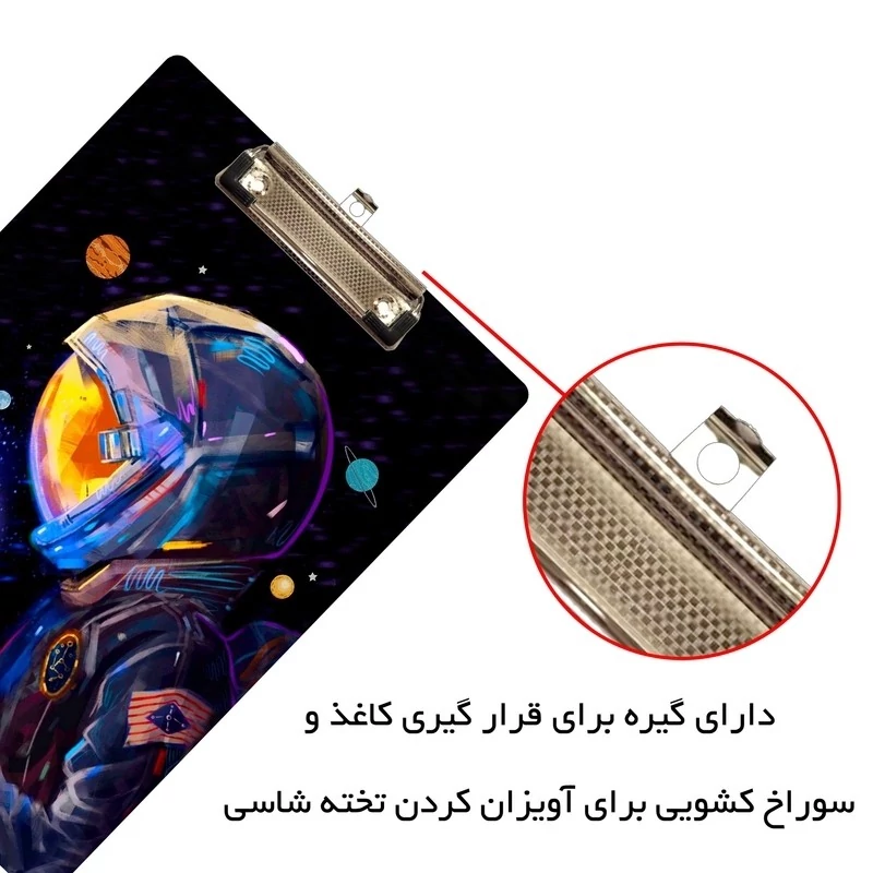 تخته شاسی مستر راد سایز A4 مدل فضانورد 📋 ✅️توضیحات 🌸چوب 🌸32×22 سانتی متر 🌸گیره استیل ✅️گروه هنری مستر راد در تلاش است تا هر روزه محصولات جدید و جذابی برای دوستداران عزیز تولید کند. محصولاتی با کیفیت عالی تا افتخاری از تولید داخلی باشند 🌼مستر راد برای بهترین ها