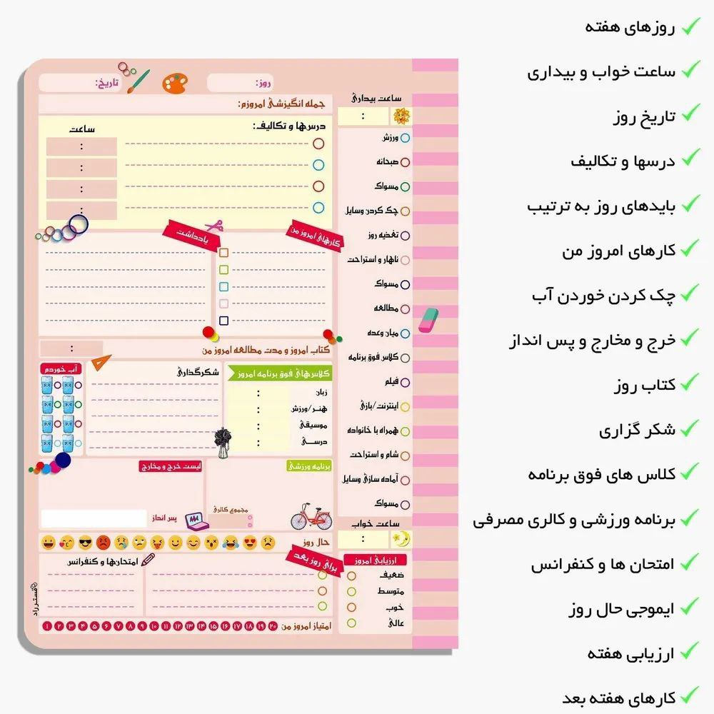 دفتر برنامه ريزي مستر راد طرح بي تي اس مدل پلنر تحصيلي Bts ✅️توضیحات : 🌸جنس : 80 گرم اندونزي | 🌸تعداد صفحات : 90 برگ 🌸زبان : فارسي 🌸نوع جلد : منعطف، دو رو سلفون 🌸ابعاد تقريبي : cm 20*15 🌸نوع صحافي : فنر مارپيچ