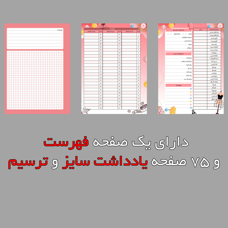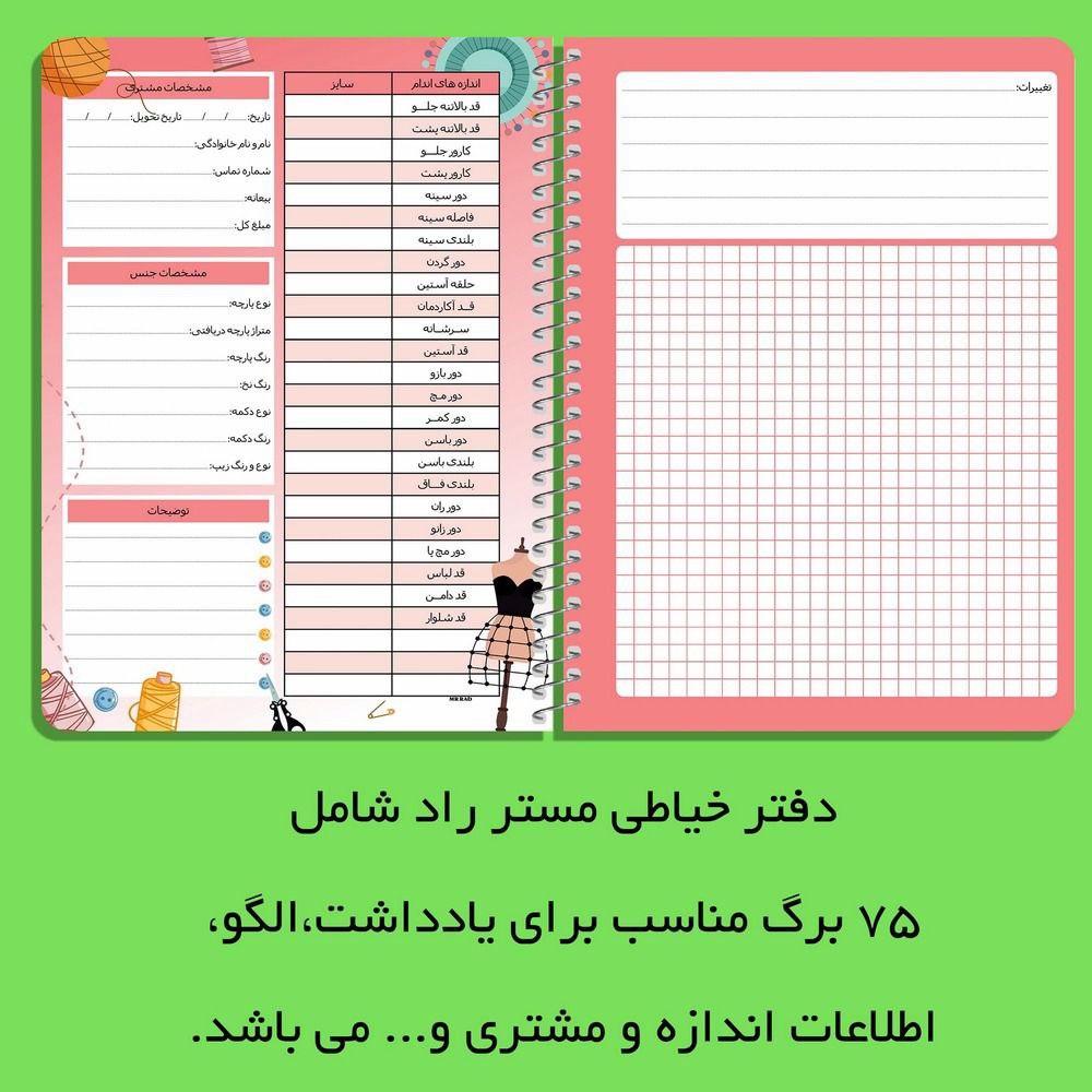 🌸دفتر آموزش خیاطی برای نوشتن و نمونه الگو که برای توضیحات و نمونه پارچه هم میشه ازش استفاده کرد