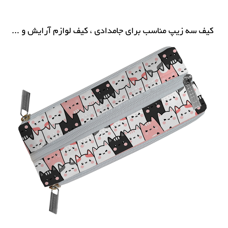 جامدادی مستر راد مدل سه زیپ طرح گربه فانتزی