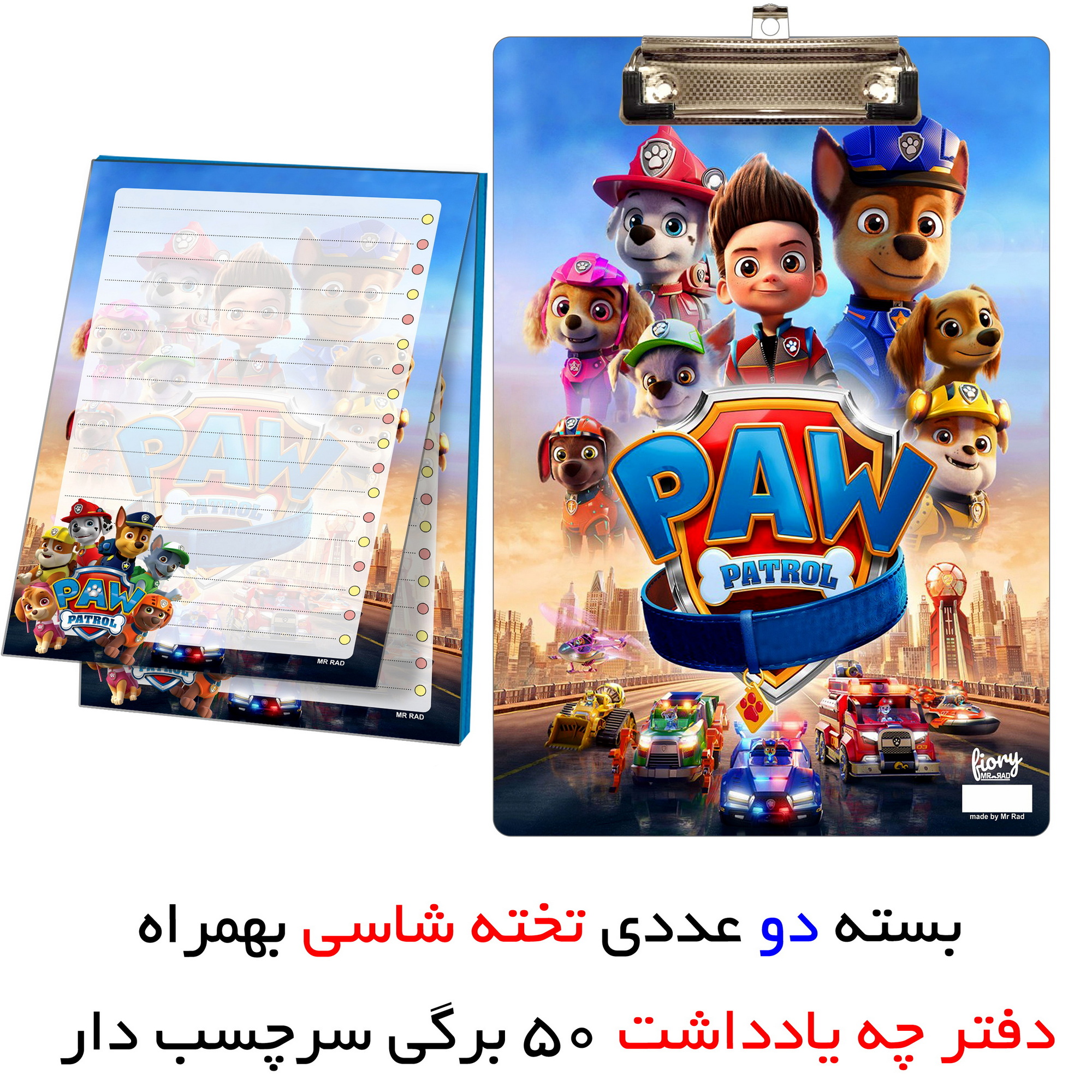 تخته شاسی مستر راد مدل سگهای نگهبان سایز A5 به همراه کاغذ یادداشت آبی