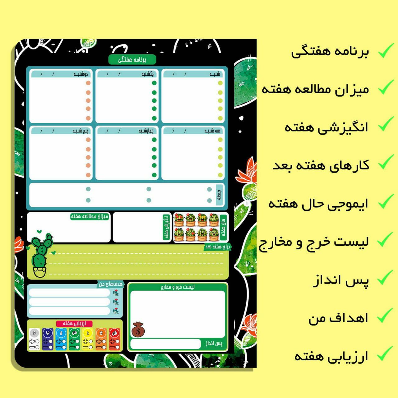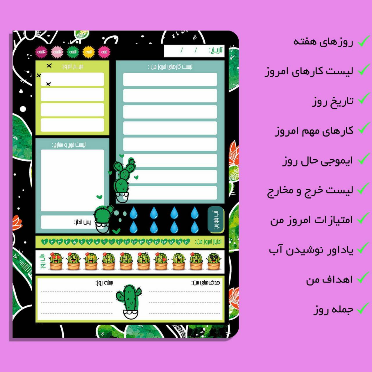 دفتر برنامه ریزی روزانه مستر راد طرح کاکتوس مدل پلنر هفت رنگ