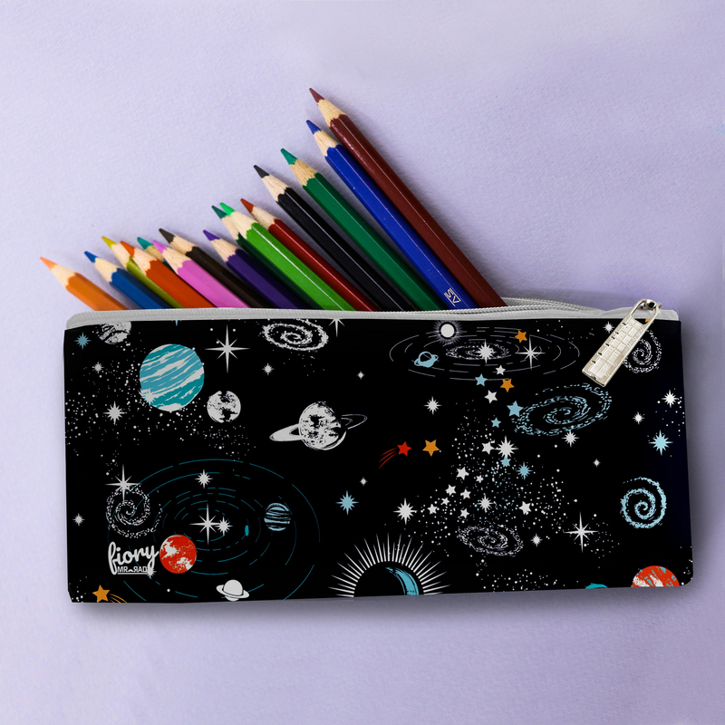 جامدادی مستر راد مدل کهکشانی طرح فضایی فانتزی مشکی ✅️توضیحات : 🌸جنس : چرم مصنوعي 🌸ابعاد تقريبي : 20/5x9/5cm