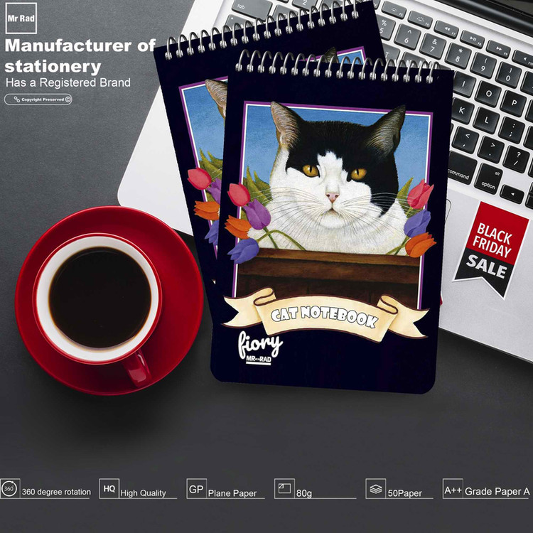دفترچه یادداشت مستر راد طرح گربه پرشین مدلCheck Box مشکی