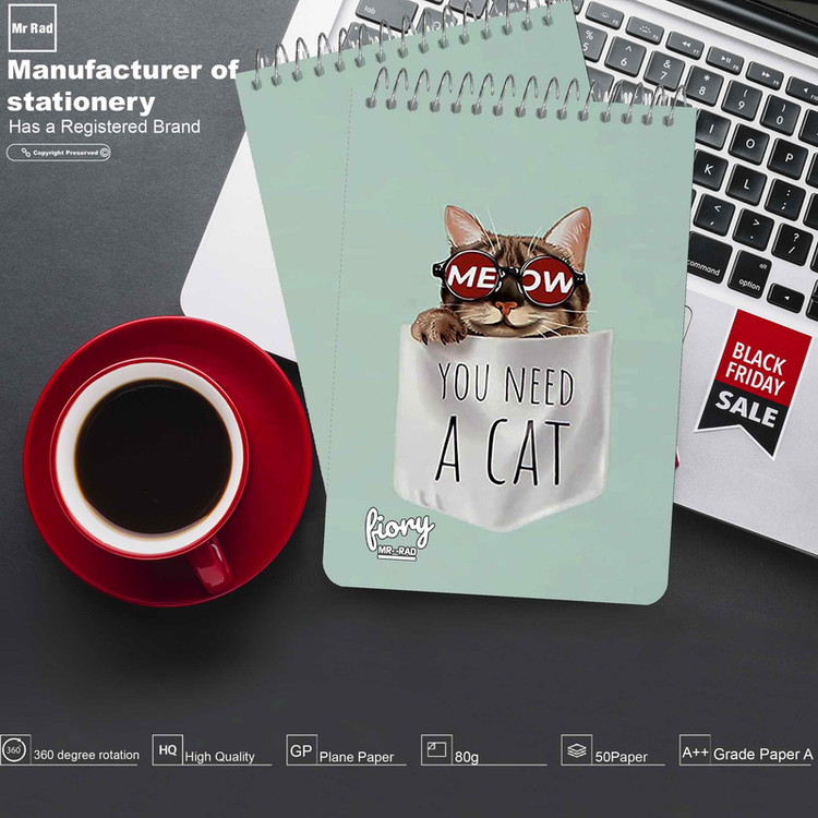 دفترچه یادداشت مستر راد طرح گربه چند رنگ