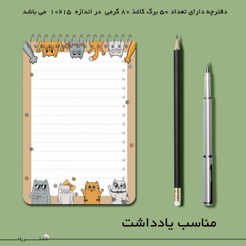 دفترچه یادداشت مستر راد طرح گربه آمازون مدل پاپ کورن کرم تیره
