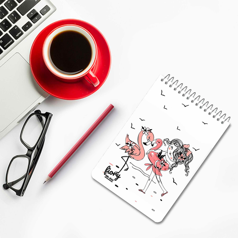 دفترچه یادداشت مستر راد طرح دختر و فلامینگو سفید ✅️توضیحات : 🌸جنس : 80 گرم اندونزي تعداد صفحات : 50 برگ 🌸نوع جلد : منعطف دو رو سلفون 🌸ابعاد تقريبي : 10*15 cm 🌸نوع صحافي : فنر مارپيچ