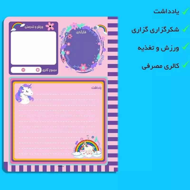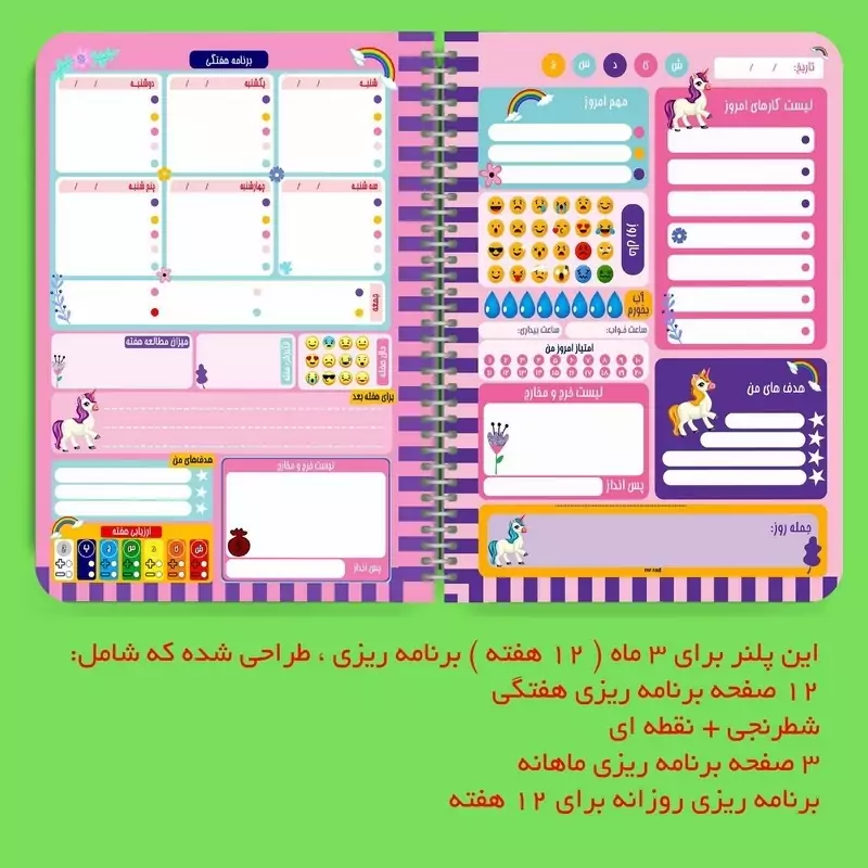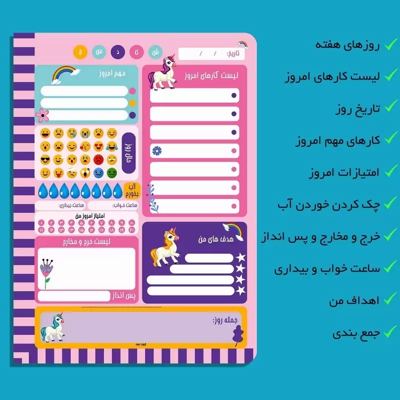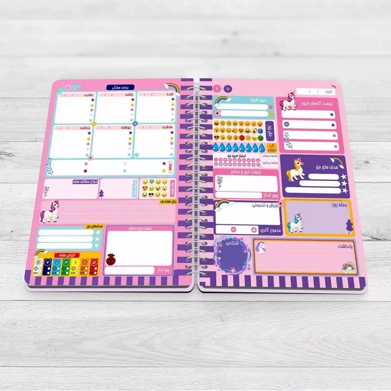 ✅️مجموعه سه عددی پلنر، دفترچه و کاغذ یونیکورن مستر راد 🎁مناسب برای کادو 🎁 💥👌جلوگیری از سردرگمی در طول روز ✅️اولین مزیتی که استفاده از پلنر برای شما دارد، نجات از سردرگمی در طول روز است. فرض کنید که صبح از خواب بیدار میشوید و هیچ برنامهای هم ندارید. به صورت شانسی هر کاری به ذهنتان رسید انجام میدهید و خبر ندارید که کارهای مهمتری هست که باید سریعتر انجام دهید. همچنین نمیدانید که برای انجام یک کار مشخص چقدر زمان دارید. در نتیجه کاری که نهایتاً یک ساعت زمان میخواهد، ممکن است 4 ساعت از زمان شما را بگیرد. بنابراین با استفاده از پلنر میتوانید با یک ذهن منظم و برنامه دقیق به استقبال روز بروید.