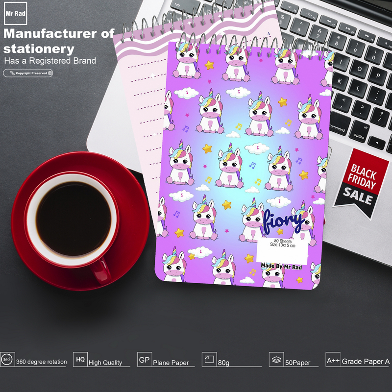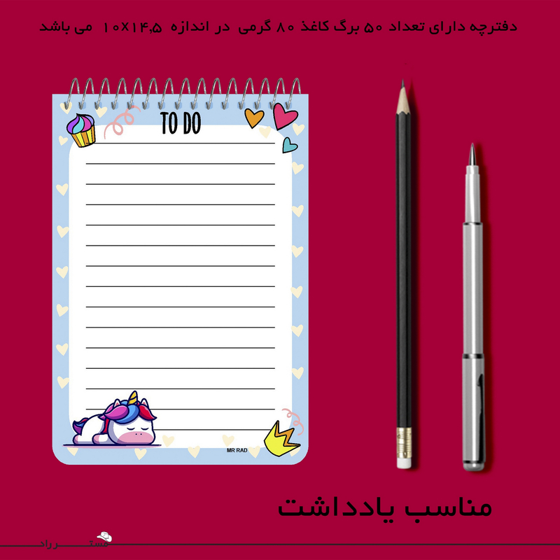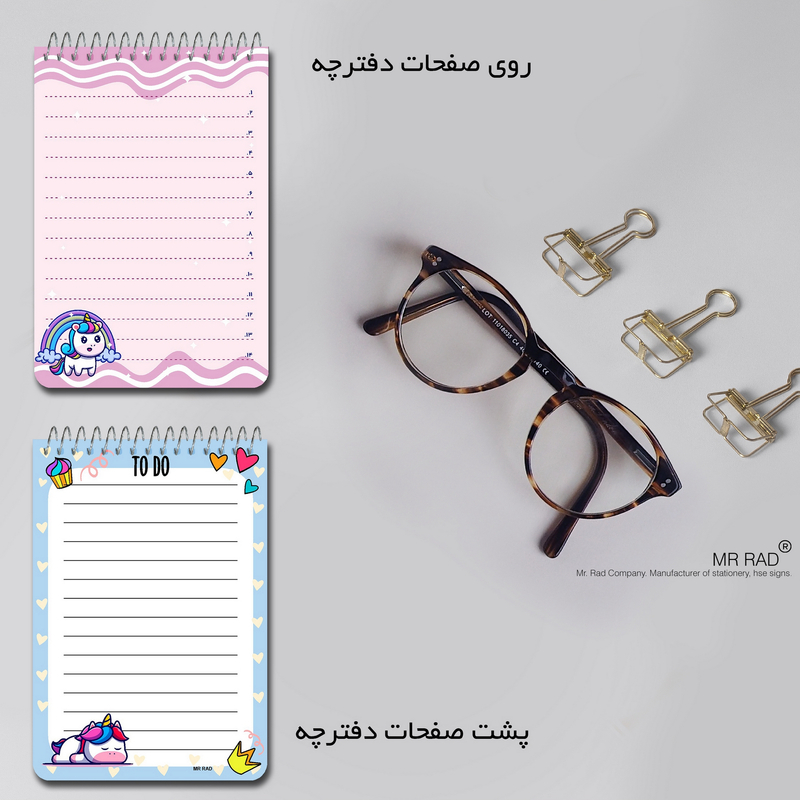 دفترچه یادداشت مستر راد طرح یونیکورن مدل اسب تک شاخ ✅️توضیحات : 🌸جنس : 80 گرم اندونزي 🌸تعداد صفحات : 50 برگ 🌸نوع جلد : منعطف دو رو سلفون 🌸ابعاد تقريبي : 10*15 cm 🌸نوع صحافي : فنر مارپيچ