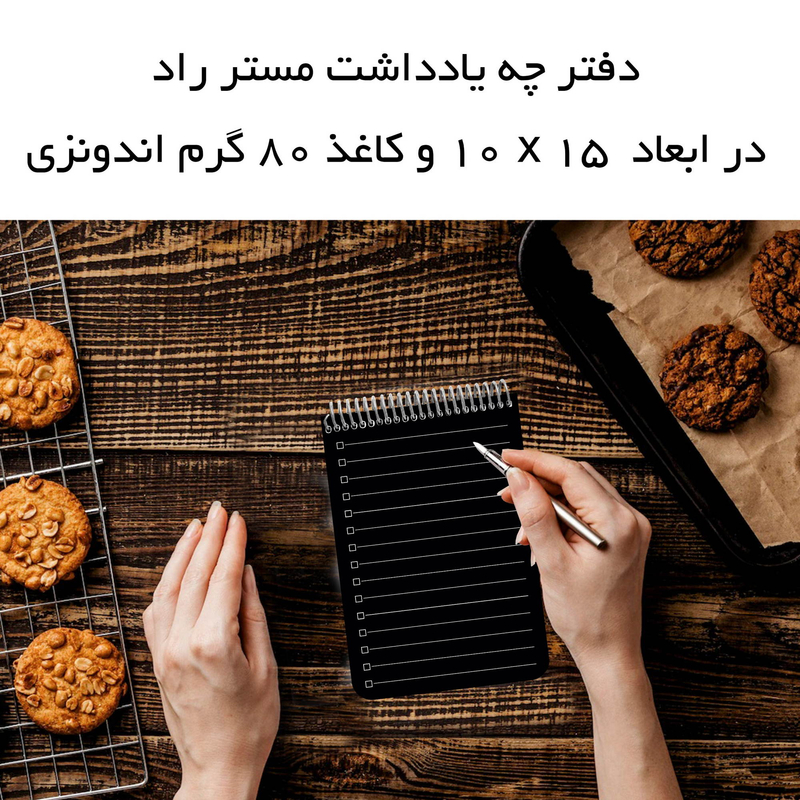 دفترچه یادداشت مستر راد طرح ثمر مدل Cheeck Box مشکی ✅️توضیحات : 🌸جنس : 80 گرم اندونزي 🌸تعداد صفحات : 50 برگ 🌸نوع جلد : منعطف دو رو سلفون 🌸ابعاد تقريبي : 10*15 cm 🌸نوع صحافي : فنر مارپيچ