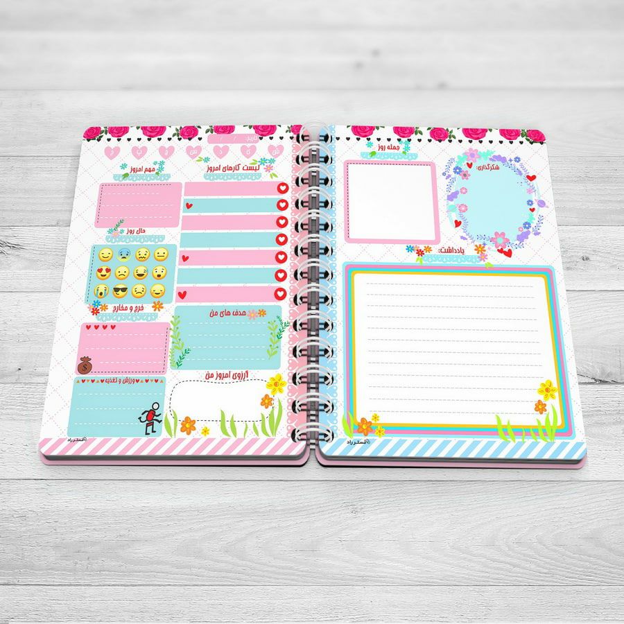 دفتر برنامه ریزی مستر راد طرح قلب چند رنگ ✅️توضیحات : 🌸جنس : تحرير 80 گرم 🌸تعداد صفحات : 75 برگ 🌸زبان : فارسي ابعاد تقريبي : 20*15 سانتيمتر 🌸نوع صحافي : فنر مارپيچ