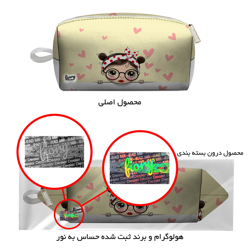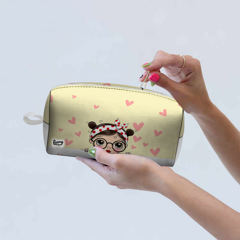 کیف لوازم آرایش زنانه فیوری مدل آذین طرح دختر کیوت زرد