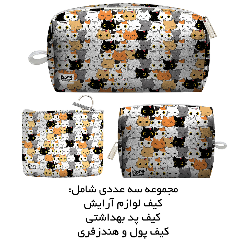 کیف لوازم آرایش زنانه مستر راد مدل گربه کیوت به همراه کیف پد و کیف پول مجموعه 3 عددی چند رنگ
