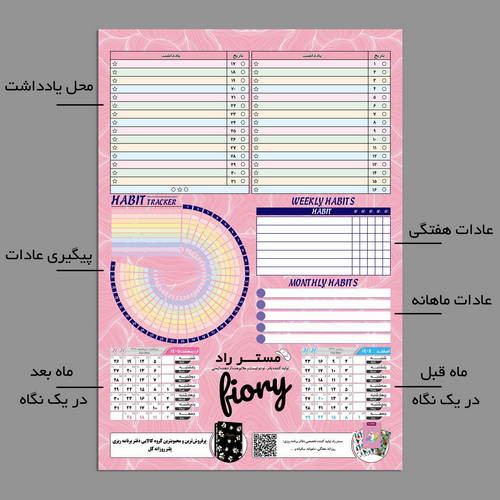 تقویم دیواری سال 1405مستر راد طرح مدیریت زمان به همراه برچسب نشانگر