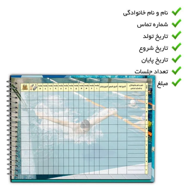 دفتر ثبت نوبت دهی مشخصات آموزش شنا